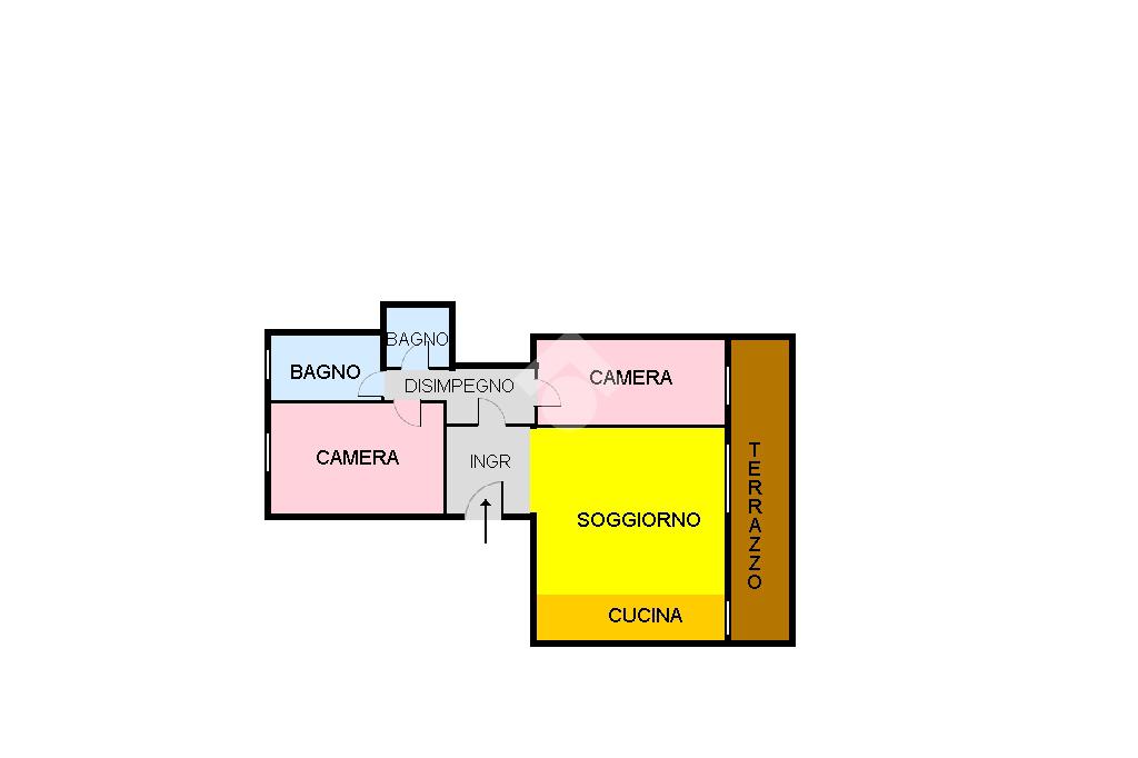 Tramite il disimpegno troviamo la zona notte composta dalla camera matrimoniale, la cameretta e due servizi di cui uno finestrato con vasca e l'altro con doccia.