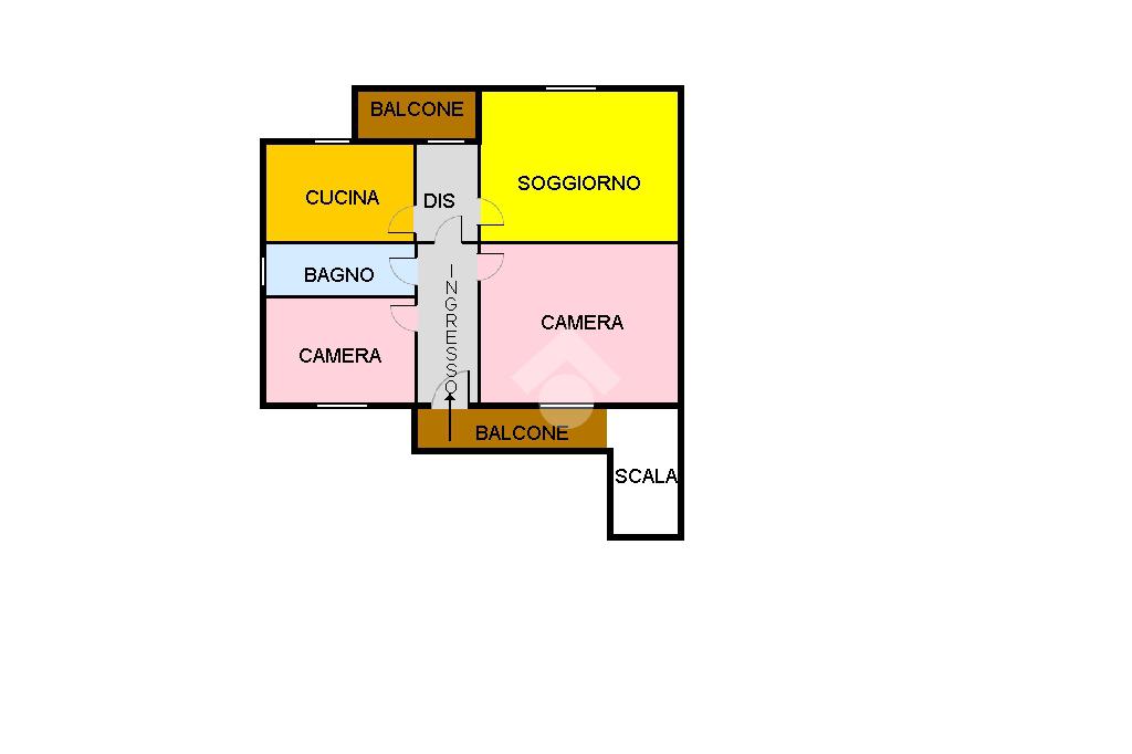 Si accede all'immobile tramite un vano scala che ci accompagna nel balcone, poi abbiamo il soggiorno, la cucina abitabile, due camere da letto ed il bagno finestrato, oltre ad un ulteriore balcone.