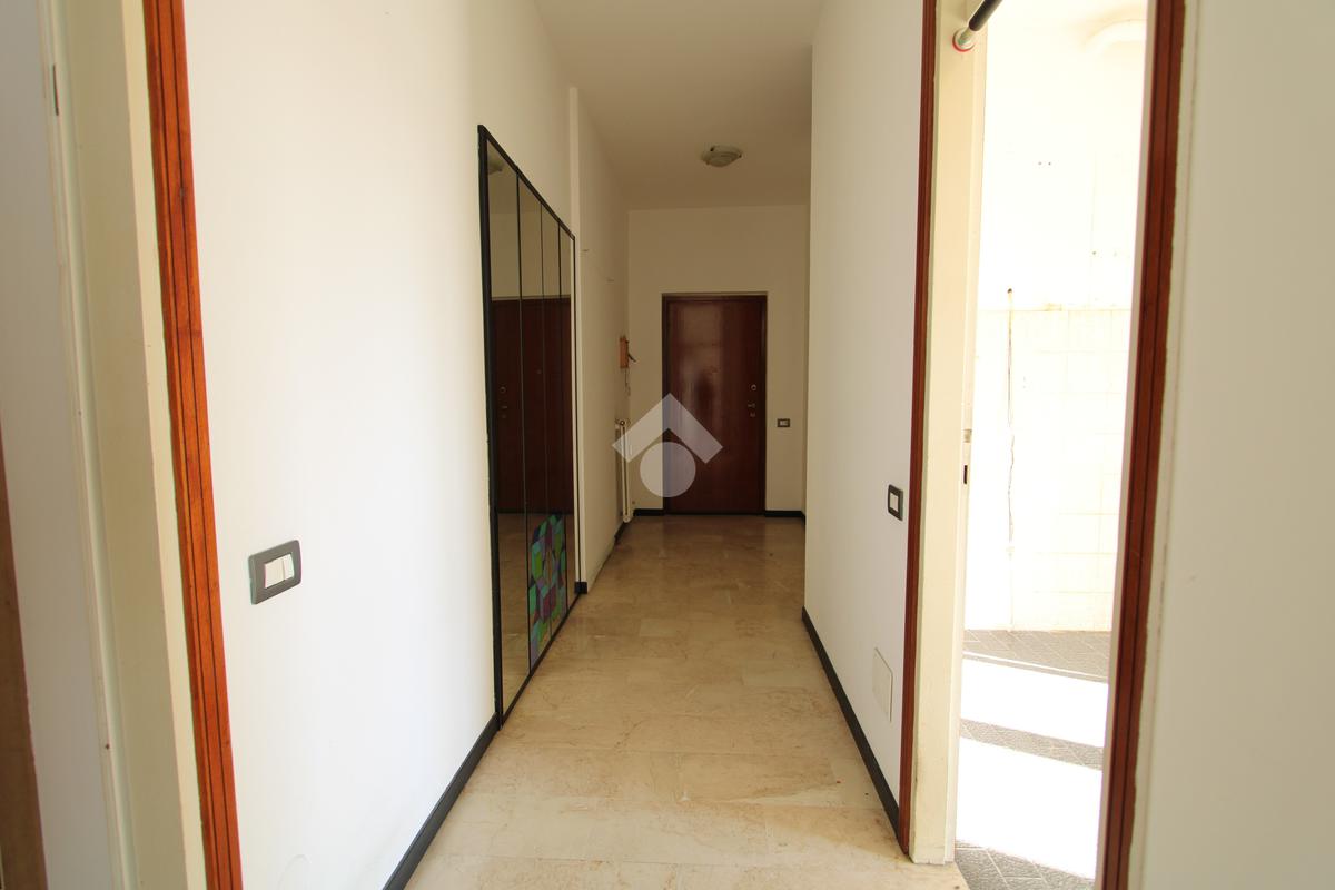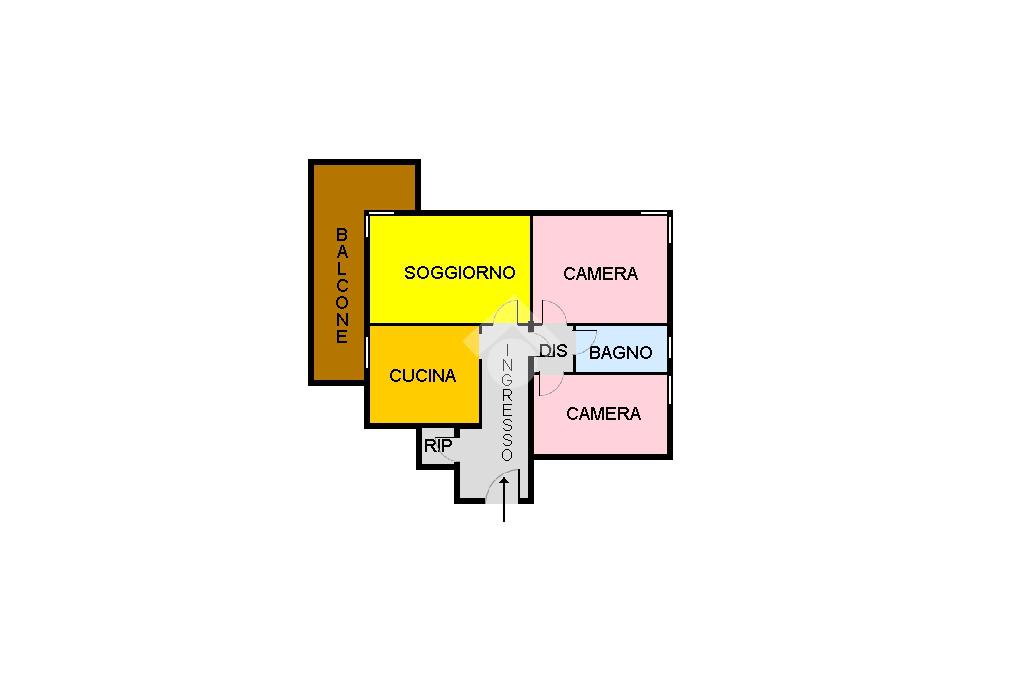 Entrando nell'abitazione veniamo accolti dall'ingresso che ci conduce nel soggiorno e nella cucina abitabile, entrambi gli ambienti hanno accesso su un ampio balcone. Tramite il disimpegno passiamo alla zona notte composta da due camere da letto, dal servizio finestrato con vasca ed infine abbiamo il ripostiglio.