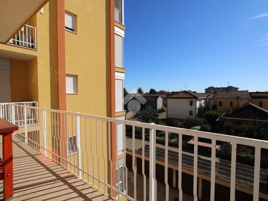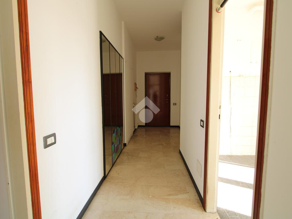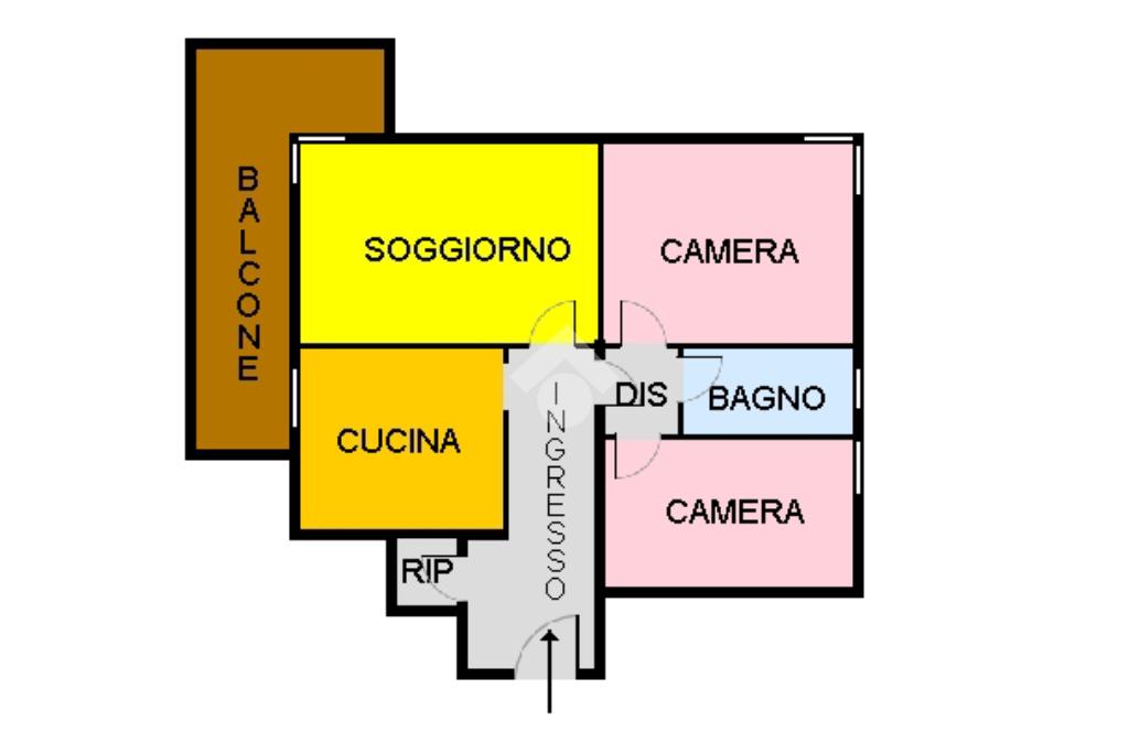 Entrando nell’abitazione veniamo accolti dall’ingresso che ci conduce nel soggiorno e nella cucina abitabile, entrambi gli ambienti hanno accesso su un ampio balcone. Tramite il disimpegno passiamo alla zona notte composta da due camere da letto, dal servizio finestrato con vasca ed infine abbiamo il ripostiglio.