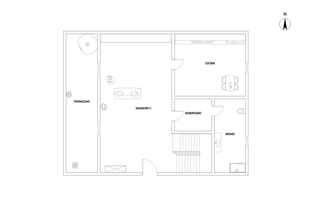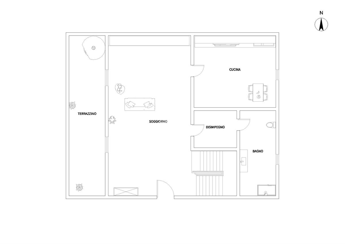 La disposizione interna prevede l’ingresso sul soggiorno con accesso al terrazzino, poi segue la cucina abitabile ed il primo servizio finestrato.