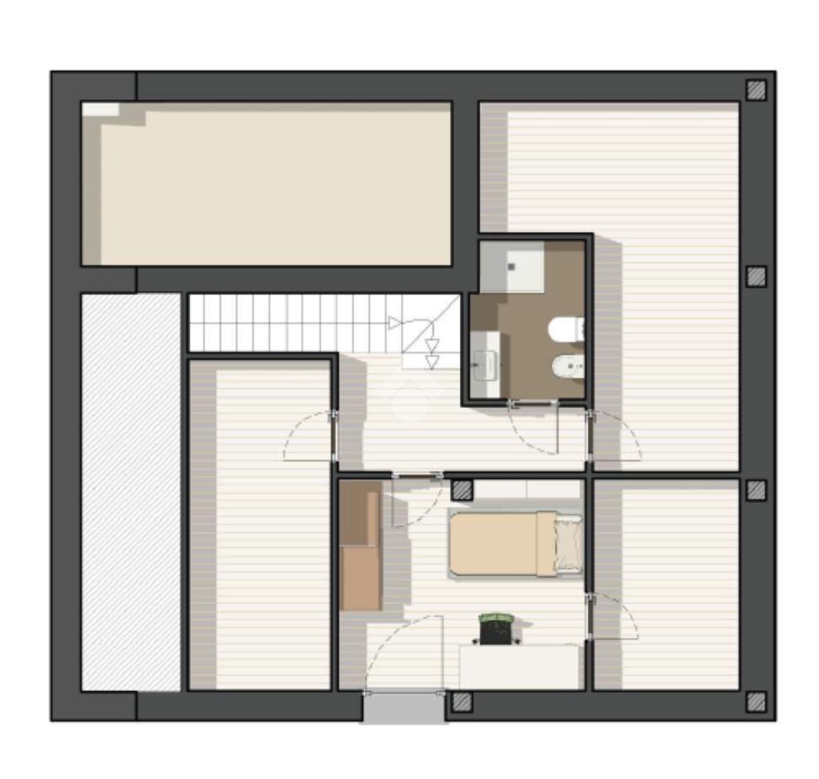 Vi è anche la possibilità di abbinare il piano mansardato, ampliando ulteriormente la superficie abitativa.